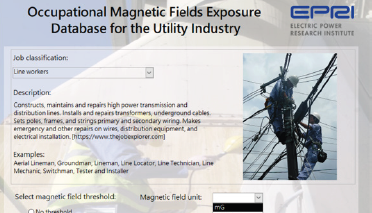 Industry exposure database containing electric and magnetic field measurement data for typical equipment and job categories in the electricity industry. Database informs survey protocols and return-to-work evaluations for workers with implanted medical devices.